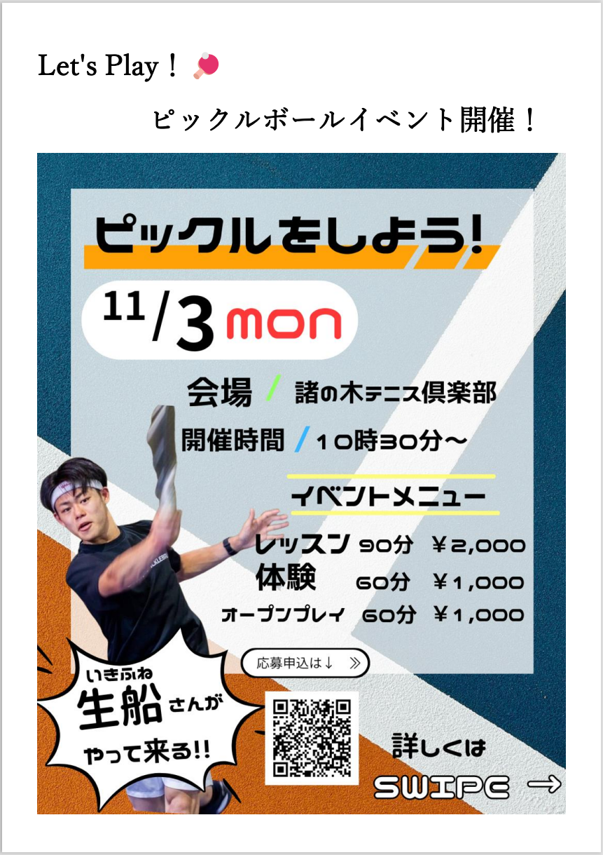 さぁ 一緒にピックルボールを楽しもう!
